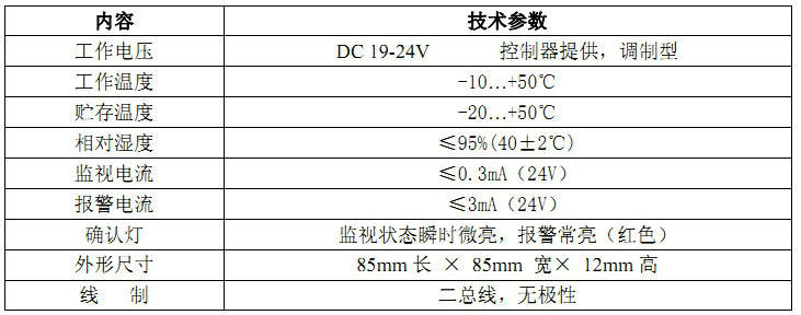 6、二總線,無極性。功耗低,*遠傳輸距離1500m。導線截面積為1.0-1.5平方毫米,對導線無特殊要求。施工簡便、費用低廉;