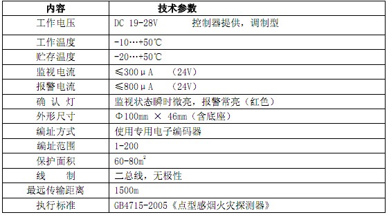 三、然后是北大青鳥JTY-GD-JBF-4100點(diǎn)型光電感煙火災(zāi)探測(cè)器技術(shù)參數(shù):